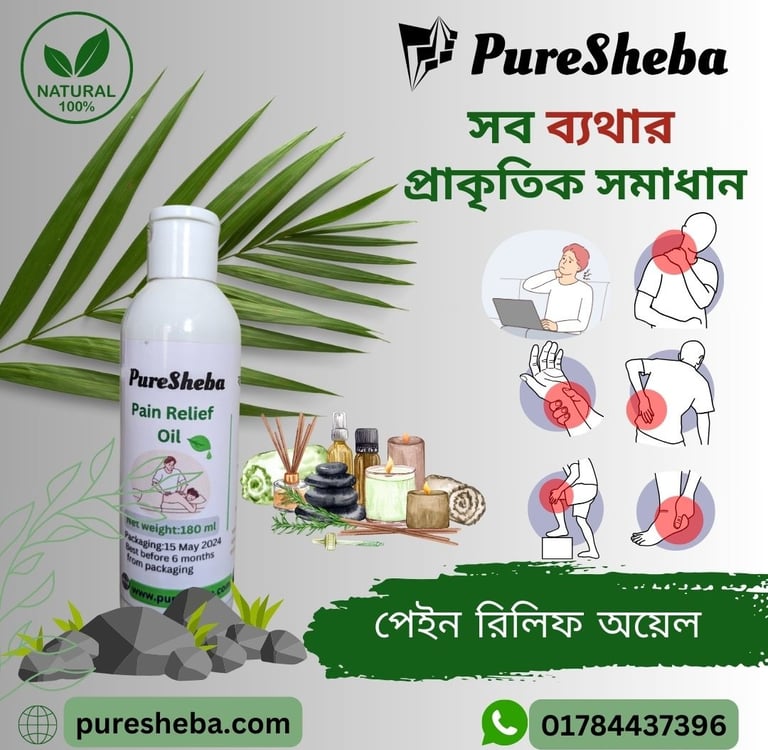 PureSheba একটি ছোট কিন্তু আন্তরিক ওয়েলনেস ব্র্যান্ড, যেখানে আমরা দৈনন্দিন সুস্থতার জন্য সহজ, প্রাকৃতিক এবং বিশ্বস্ত সমাধান সরবরাহ করি।আমাদের যাত্রা শুরু হয়েছে হাতে তৈরি ন্যাচারাল পেইন রিলিফ অয়েল, যা প্রাকৃতিক উপাদান ও ঘরোয়া পদ্ধতিতে তৈরি, নিরাপদ ও আরামদায়ক উপশমের জন্য।